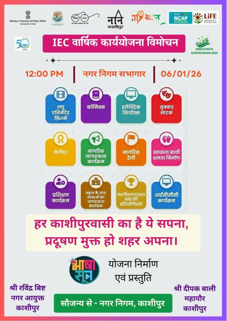 इन सभी गतिविधियों का उद्देश्य नागरिकों को स्वच्छता, जनहित योजनाओं एवं नगर निगम की पहलों के प्रति जागरूक करना और उनकी सक्रिय सहभागिता सुनिश्चित करना है। नगर निगम काशीपुर आधुनिक एवं प्रभावी संचार माध्यमों के जरिए शहर को स्वच्छ, सुंदर और जागरूक बनाने के लिए निरंतर प्रयासरत है।