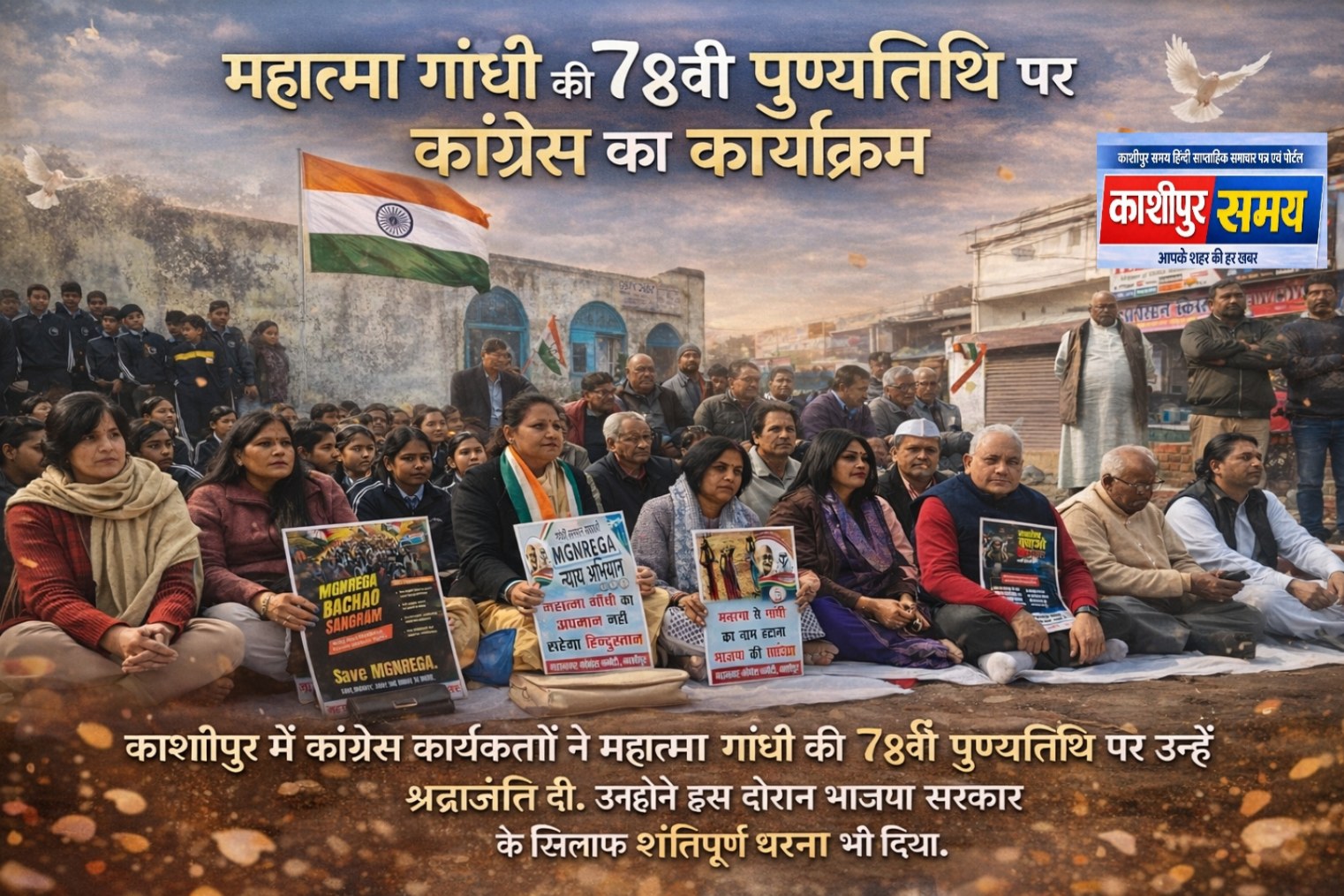 Congress workers in Kashipur paid tribute to Mahatma Gandhi on his 78th death anniversary.They also held a peaceful protest against the BJP government.