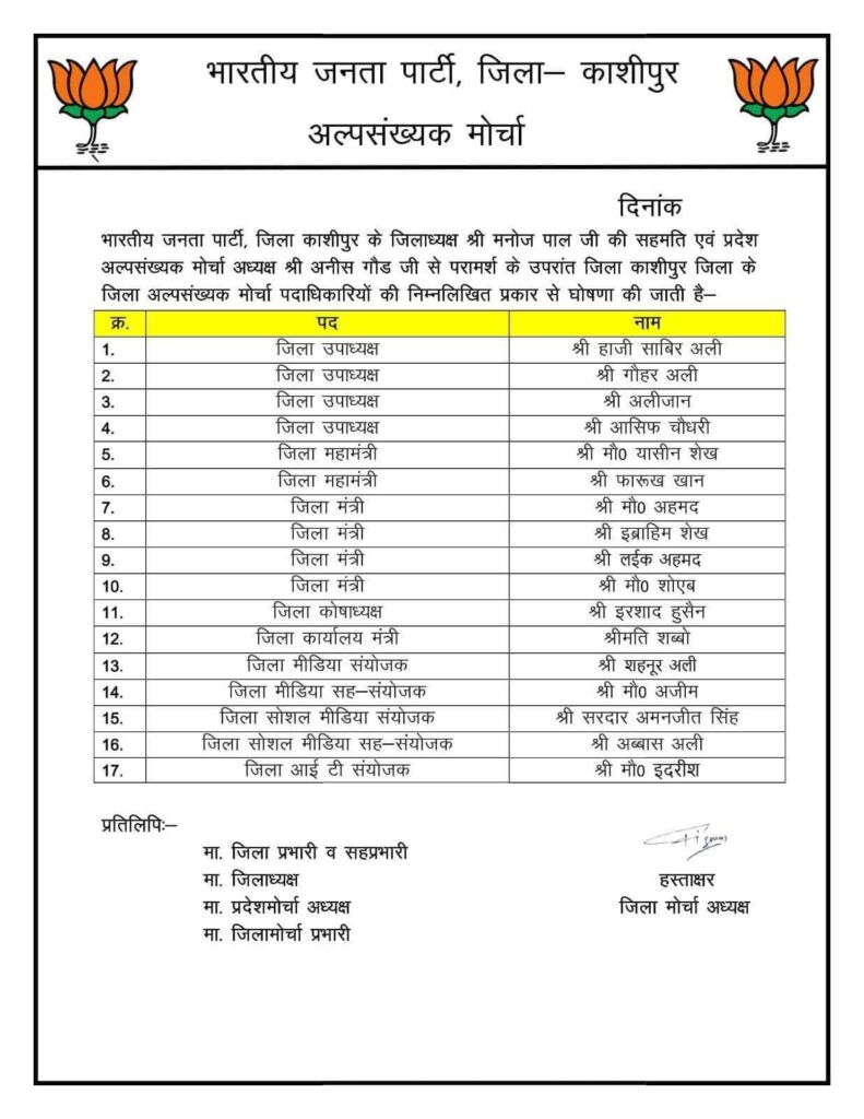 काशीपुर|- भाजपा अल्पसंख्यक प्रकोष्ठ में आसिफ चौधरी बने जिला उपाध्यक्ष, कार्यकर्ताओं में खुशी की लहर