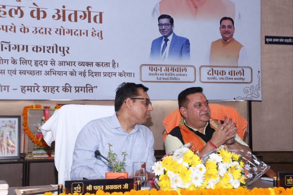 कार्यक्रम में नैनी पेपर लिमिटेड के एमडी पवन अग्रवाल ने कहा कि यह काशीपुर का बहुत बड़ा सौभाग्य है कि उसे दीपक बाली जैसा कर्म योगी मेयर मिला है जिसके अंदर बहुत कुछ करने का जज्बा है और उनके सपनों की उड़ान बहुत ऊंची है। उन्होंने विश्वास दिलाया कि नैनी पेपर्स लिमिटेड नगर निगम को हमेशा आर्थिक मदद देता रहेगा। उन्होंने कहा कि हमारी सोच अच्छी होनी चाहिए पैसे की कोई कमी नहीं होती। क्योंकि महापौर दीपक बाली ऐसे शख्स हैं जिनके कहने से क्षेत्र से ही नहीं बाहर से भी आर्थिक मदद आ जाएगी क्योंकि वह काम करना और कराना जानते हैं। उन्होंने कहा की दौलत नहीं बल्कि बदौलत ज्यादा प्रभावशाली होती है।