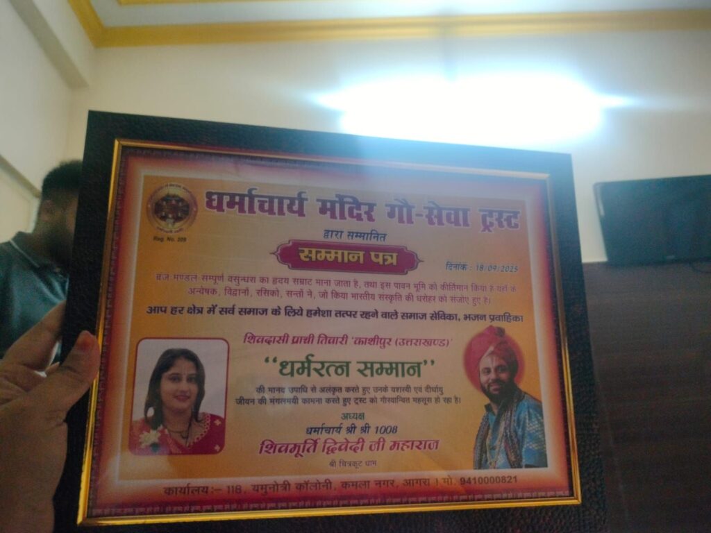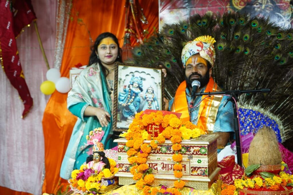 आगरा संवाददाता। आगरा के बल्केश्वर पार्क में चल रही श्रीमद्भागवत कथा की दिव्य त्रिवेणी में शनिवार को भक्ति का महासागर उमड़ पड़ा। विश्व कल्याण मिशन ट्रस्ट के तत्वावधान में हो रही इस आध्यात्मिक कथा में राष्ट्रीय संत पूज्य धर्माचार्य शिवमूर्ति जी महाराज ने श्रद्धालुओं को भक्ति वैराग्य और ज्ञान का संदेश दिया। खचाखच भरे पंडाल में बापू ने कहा हमारा तन मोक्ष का साधन है लेकिन हम विषय-वासनाओं में फंसे हैं। हमें गोपियों से सीखना चाहिए कि भगवान से प्रेम कैसे किया जाता है। उन्होंने कहा कि भागवत कथा विषयानंद से निकालकर ब्रह्मानंद की ओर ले जाती है और मन को प्रभु की शरण में स्थिर करती है। कथावाचक ने कहा कि भक्ति करने के लिए ज्यादा कसरत की जरूरत नहीं है बस जहां हो वहीं बस सुमिरन करो और कथा सुनने का अवसर मिले तो जरूर सुनो। बापू ने व्यंग्य करते हुए कहा ‘स्वामी रामदेव कहते हैं सांस को बाहर छोड़ो और हम हैं कि ‘सास’ को बाहर छोड़ देते हैं।’ इस पर पंडाल ठहाकों से गूंज उठा। कथा के विश्राम पर काशीपुर की बेटी शिवदासी प्राची तिवारी ने मेरे सरकार का दीदार बड़ा प्यारा है कृष्णा मेरा प्यारा है गोविन्द मेरा प्यारा है भजन पर श्रद्धालु भावविभोर हो उठे और पंडाल में बैठीं सभी महिलाएं झूम उठी। काशीपुर की बेटी को पूज्य धर्माचार्य शिवमूर्ति जी महाराज जी के चरणकमलों द्वारा स्मृति चिन्ह देकर सम्मानित किया।