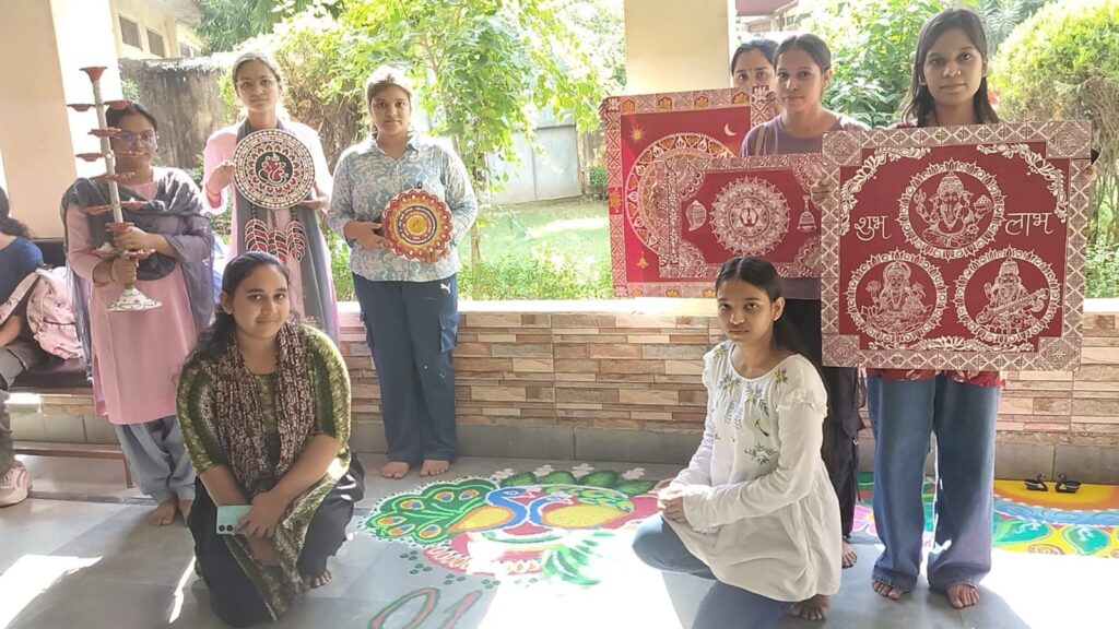 काशीपुर। चन्द्रावती तिवारी कन्या स्नातकोत्तर महाविद्यालय में दीपावली महोत्सव के अवसर पर गृहविज्ञान विभाग एवं चित्रकला विभाग द्वारा रंगोली प्रतियोगिता, ऐपण एवं दिवाली सजावट सामग्री प्रतियोगिताओं का आयोजन किया गया। छात्राओं ने उत्साहपूर्वक बढ़-चढ़कर प्रतिभाग किया।